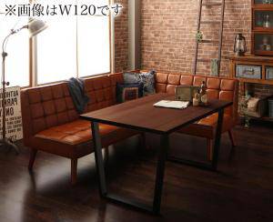 ダイニングテーブルセット 6人用 コーナーソファー L字 l型 ベンチ 椅子 おしゃれ 安い 食卓 レザー 合皮 カウチ 4点 ( 机+ソファ1+右肘ソファ1+長椅子1 ) 幅120 西海岸 ヴィンテージ インダストリアル レトロ 高さ65 ロータイプ 低め ウォールナット 大きい