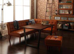 ダイニングテーブルセット 5人用 コーナーソファー L字 l型 ベンチ 椅子 おしゃれ 安い 食卓 レザー 合皮 カウチ 4点 ( 机+ソファ1+右肘ソファ1+スツール1 ) 幅120 西海岸 ヴィンテージ インダストリアル レトロ ミッドセンチュリー 高さ65 ロータイプ 低め ウォールナット