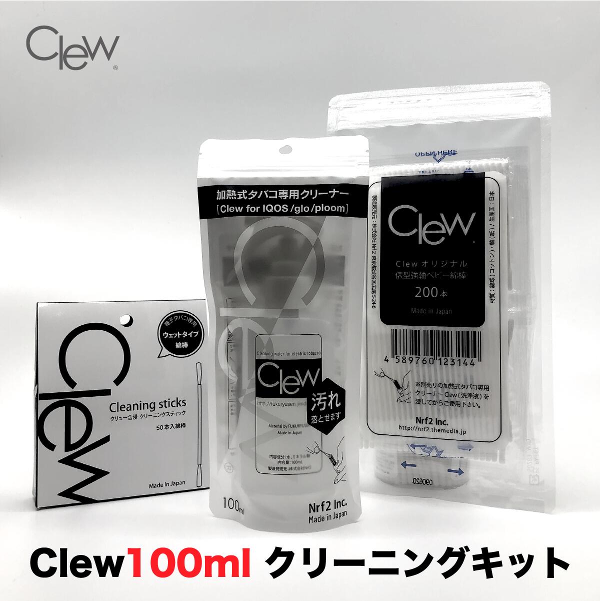 【 SALE期間中! 10% offクーポン対象 】 送料無料「 Clew 100ml + オリジナル俵型綿棒 + ウェット綿棒 」セットAアイコス glo グロー 掃除 クリーニング 電子タバコ クリーナー スティック ブラシ アイコスクリーナー マルチ IQOS 互換